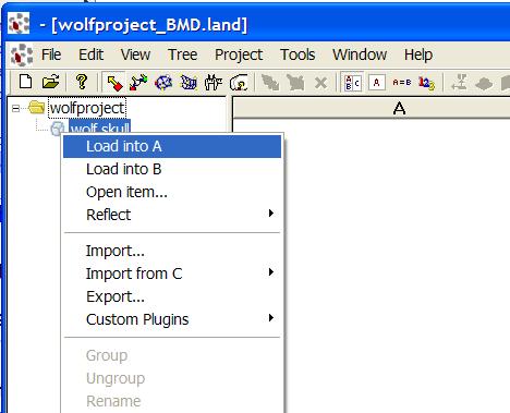Right-click the icon of the surface in the Database Contents area in Landmark and select Load into A.