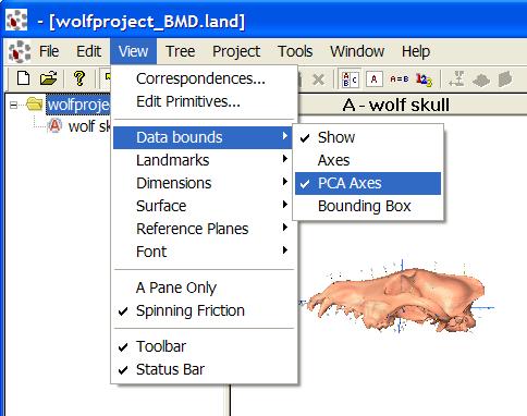 To eliminate the set of axes that pierce the surface, select Data bounds from the View menu and click on PCA Axes to remove the tick mark to the left of it.