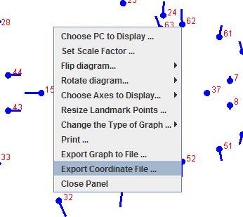 In MorphoJ, go to the graph from which you want to make a visualization and select Export Coordinate File from the pop-up menu (see screen shot above).