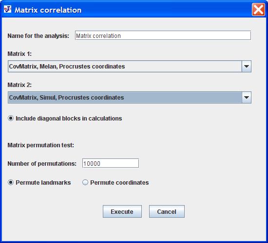 Matrix correlation is a widespread procedure for making a quick overall comparison of two matrices. In geometric morphometrics, these matrices are usually covariance matrices (exclusively so in MorphoJ).